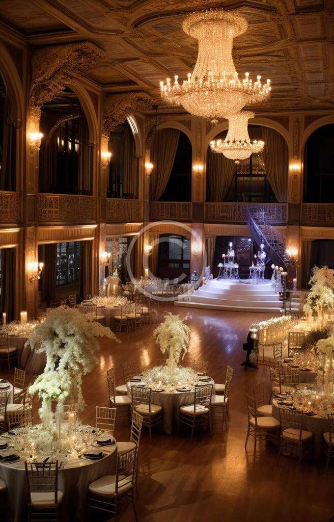 For the reception, the design featured a contemporary look with sleek table settings, ambient lighting, and floral centerpieces. The soft hues of the decor, combined with atmospheric lighting, created a romantic but modern environment that matched the couple’s style.